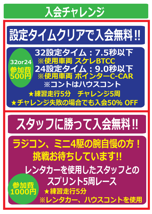 スタッフにレースで勝って入会無料‼