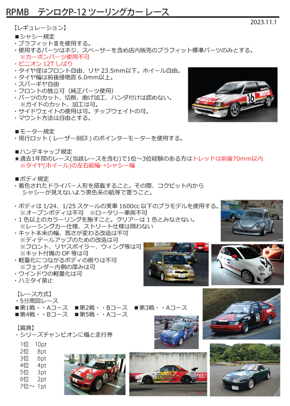 ・ボディは1/24、1/25スケールの実車1600cc以下のプラモデルを使用する。