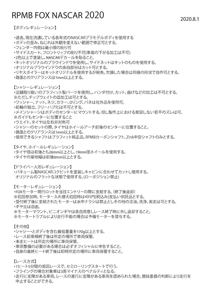 FOX NASCARのレギュレーション